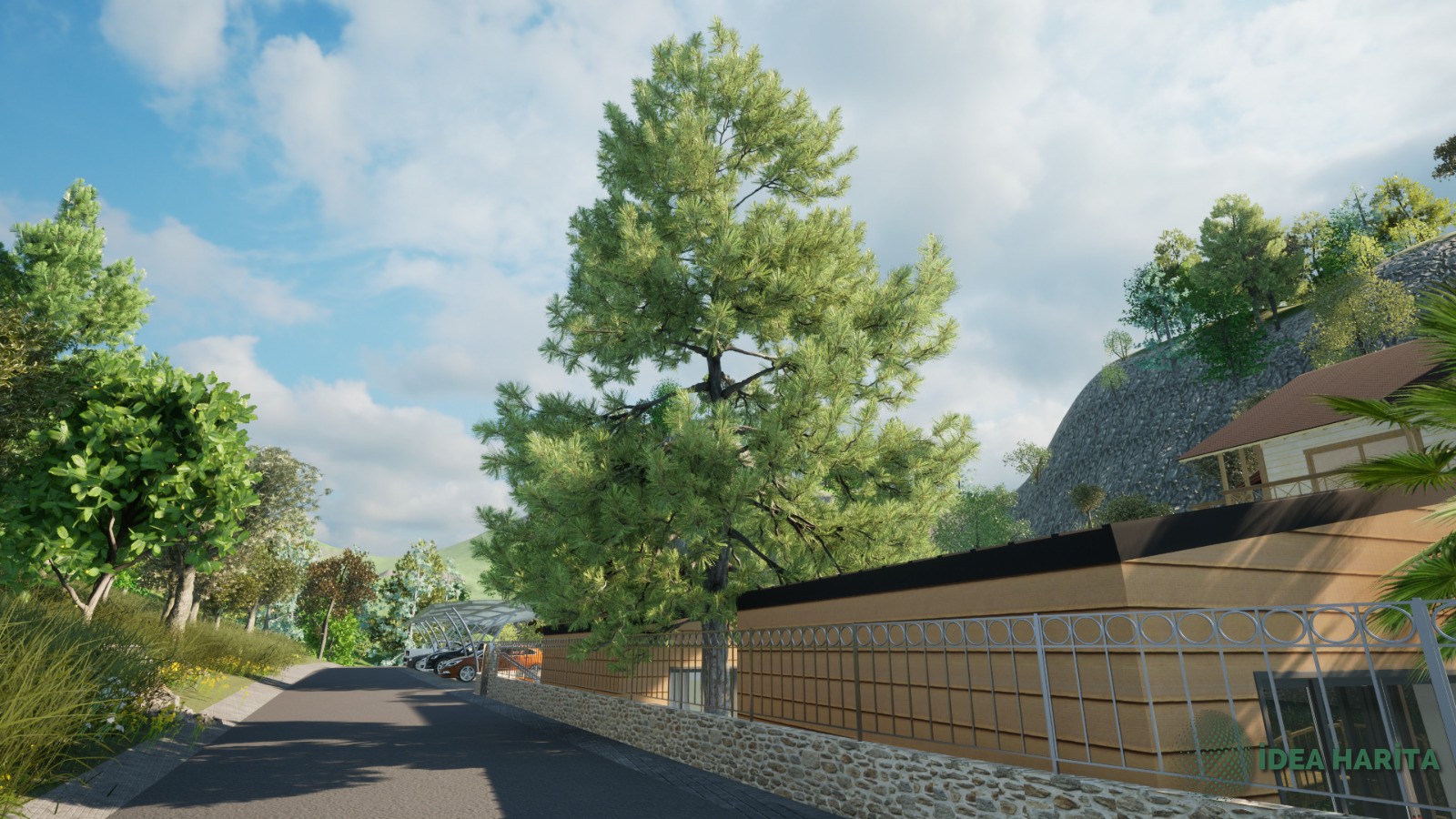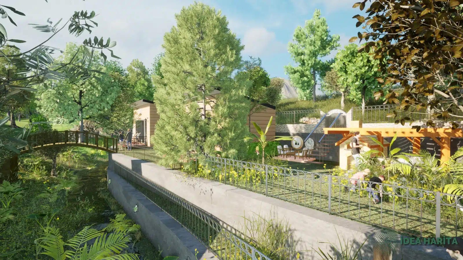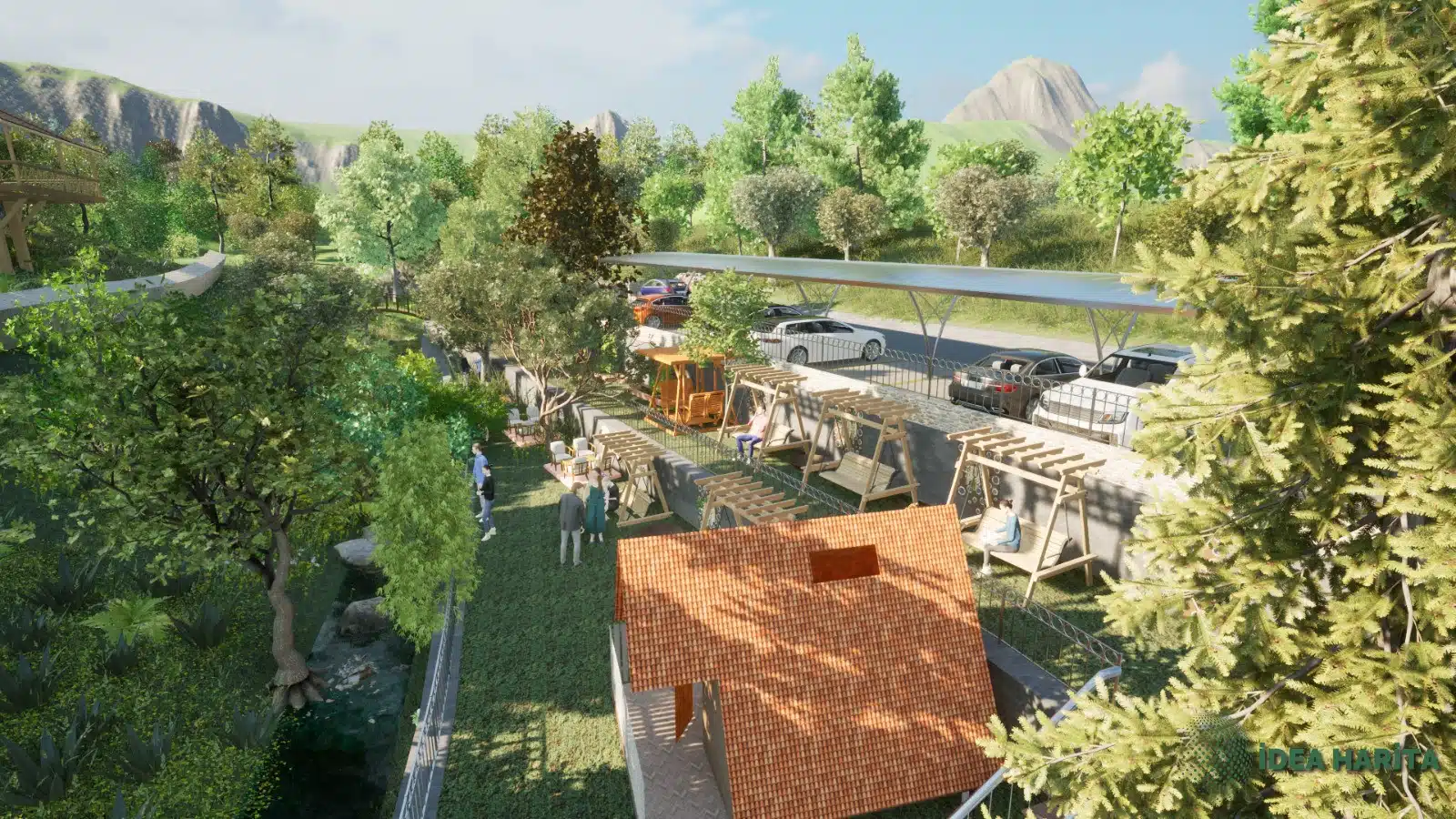 Edremit’in en sevilen köylerinden biri olan Pınarbaşı köyünde dere kenarında yaklaşık eğimi %17 olan arazimizi kademelendirdiken sonra otopark alanları ve Bungalov alanları yer seçimi yapılarak bahçe düzenlenmesi planlanmıştır burada görselliğin yarı sıra maliyet ve işçilik gibi kalemler detaylı olarak analiz edilmiş ve servis alanları barbekü oturma alanları kullanıcı dostu olarak tasarlanmıştır uygulama aşamasında drone GPS aleti yersel ölçüm araçları kullanılacaktır.