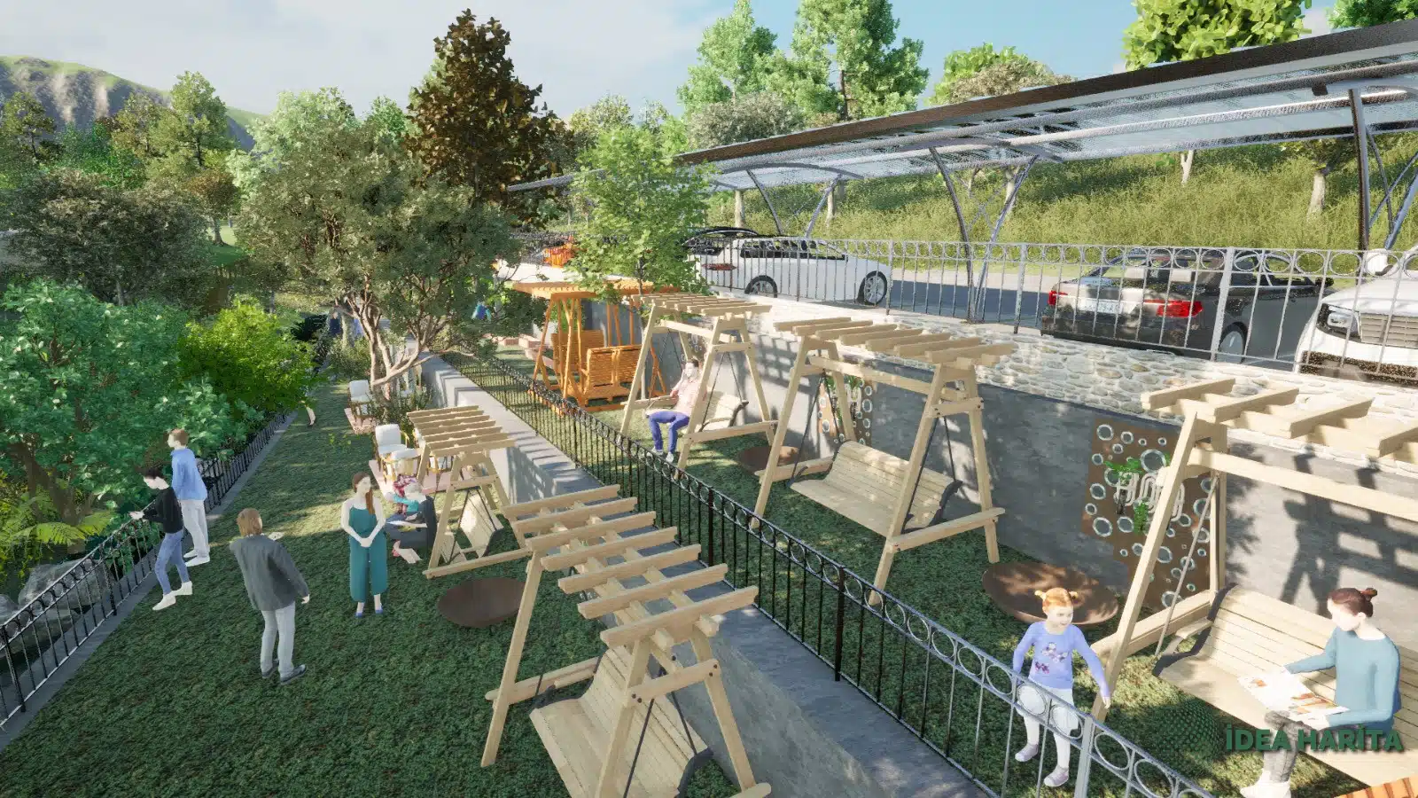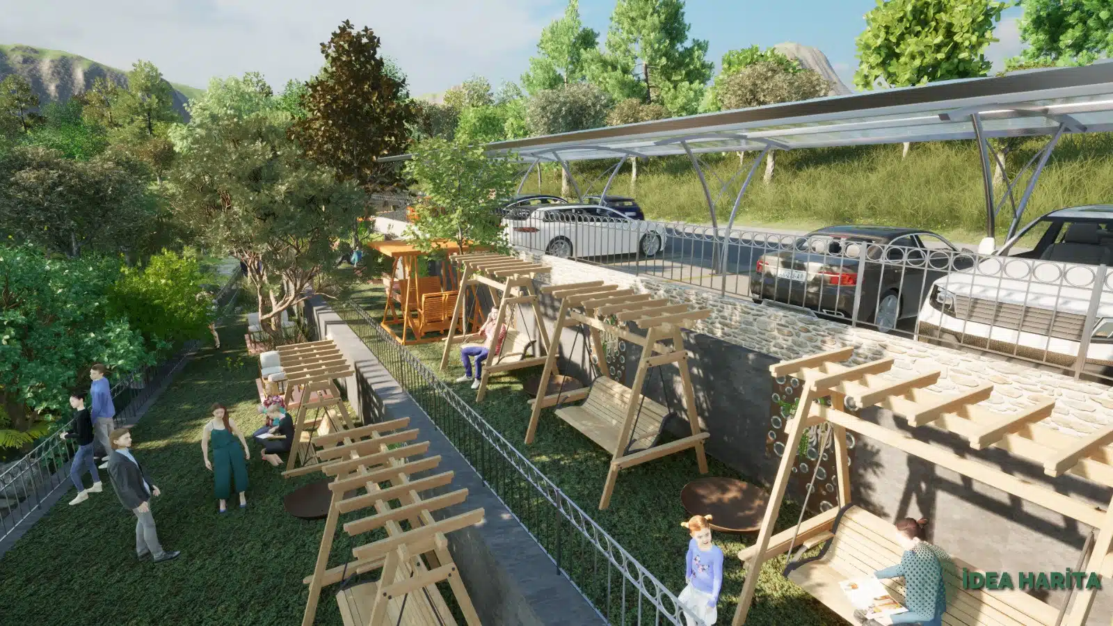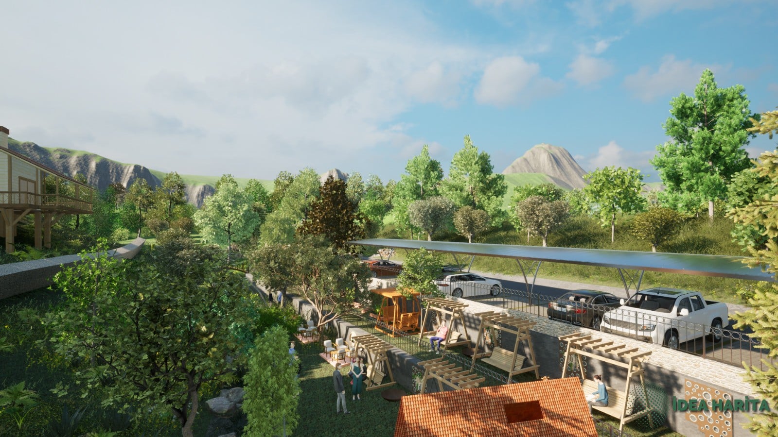 Edremit’in en sevilen köylerinden biri olan Pınarbaşı köyünde dere kenarında yaklaşık eğimi %17 olan arazimizi kademelendirdiken sonra otopark alanları ve Bungalov alanları yer seçimi yapılarak bahçe düzenlenmesi planlanmıştır burada görselliğin yarı sıra maliyet ve işçilik gibi kalemler detaylı olarak analiz edilmiş ve servis alanları barbekü oturma alanları kullanıcı dostu olarak tasarlanmıştır uygulama aşamasında drone GPS aleti yersel ölçüm araçları kullanılacaktır.